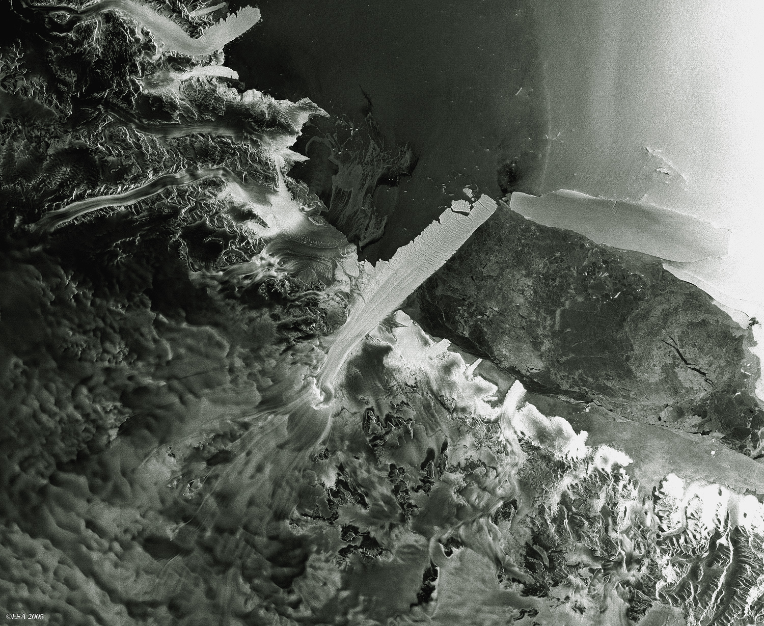 A Drygalski-jégnyelv, amelyet a David-gleccserből származó jég szakadatlan nyomása alakított ki, csaknem 50 kilométernyire belóg a déli-sarkvidéki Ross-tengerbe. „Ezek a jégnyelvek néha egyszerűen letörnek, ám ez olyan vastag, hogy eddig képes volt ellenállni a tenger erejének” – mondja Robert Bindschadler a NASA gleccserkutatója.