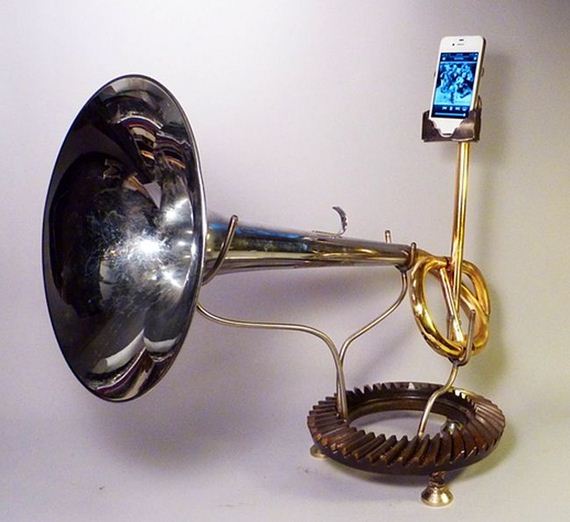 Emil Berliner, az első gramofon megalkotója és megnézné a következő képeket, minimum az ájulás kerülgetné... hogy ilyet még az álmában sem gondolta. Ettől eltekintve ezek a szép, gramofonról lemaradt hallócsövek analóg módon képesek kihangosítani a hozzájuk csatlakoztatott iPhone-t...